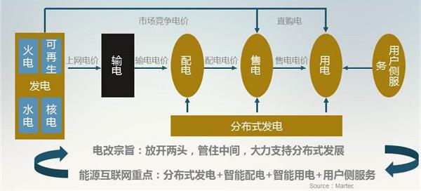 單向的信息傳遞容易導(dǎo)致供需信息不對(duì)稱,造成能源浪費(fèi)或供應(yīng)不足。因此電改是推動(dòng)能源互聯(lián)網(wǎng)的必要條件,是真正實(shí)現(xiàn)能源流、信息流、業(yè)務(wù)流融合的基礎(chǔ)。