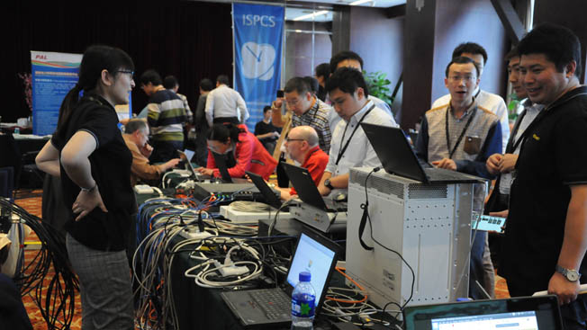會議包含互插拔(兼容性)測試、技術(shù)交流日和學(xué)術(shù)研討會三個部分?;ゲ灏螠y試環(huán)節(jié),所有參與者都能夠與全球涉及IEEE1588時(shí)鐘同步技術(shù)廠商的設(shè)備或組件進(jìn)行互插拔測試,測試項(xiàng)目覆蓋電力、通信等領(lǐng)域的應(yīng)用模式和標(biāo)準(zhǔn),驗(yàn)證產(chǎn)品在精確時(shí)鐘同步技術(shù)協(xié)議一致性、行業(yè)標(biāo)準(zhǔn)符合度、與主流廠商設(shè)備兼容性等方面的性能,分享技術(shù)經(jīng)驗(yàn)。