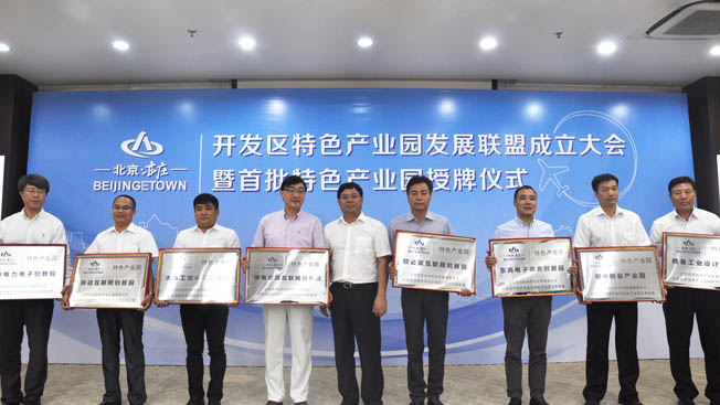 2015年7月16日,北京經(jīng)濟(jì)技術(shù)開發(fā)區(qū)特色產(chǎn)業(yè)園發(fā)展聯(lián)盟成立大會(huì)暨首批特色產(chǎn)業(yè)園授牌儀式在開發(fā)區(qū)博大大廈舉行,開發(fā)區(qū)管委會(huì)主任梁勝、副主任繩立成、高言杰、大興區(qū)黨組成員謝冠超等領(lǐng)導(dǎo)及開發(fā)區(qū)工委辦、宣傳部、發(fā)改局、大興經(jīng)信委、15家特色產(chǎn)業(yè)園主要負(fù)責(zé)人參加了本次會(huì)議。作為“北京市經(jīng)濟(jì)技術(shù)開發(fā)區(qū)特色產(chǎn)業(yè)園發(fā)展聯(lián)盟”成員單位之一,“博電能源互聯(lián)網(wǎng)創(chuàng)新園”(PONOVO Energy Internet Innovation Park)等15個(gè)園區(qū)首批獲得授牌。北京博電董事長(zhǎng)陳衛(wèi)出席會(huì)議并接受開發(fā)區(qū)授牌。