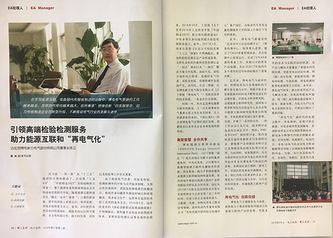 2018年5月,陳衛(wèi)董事長接受機械工業(yè)信息研究院《電氣應(yīng)用》編輯部專訪,和大家分享了博電電氣近期在園區(qū)發(fā)展、創(chuàng)新技術(shù)以及有關(guān)企業(yè)未來發(fā)展的新動態(tài)。