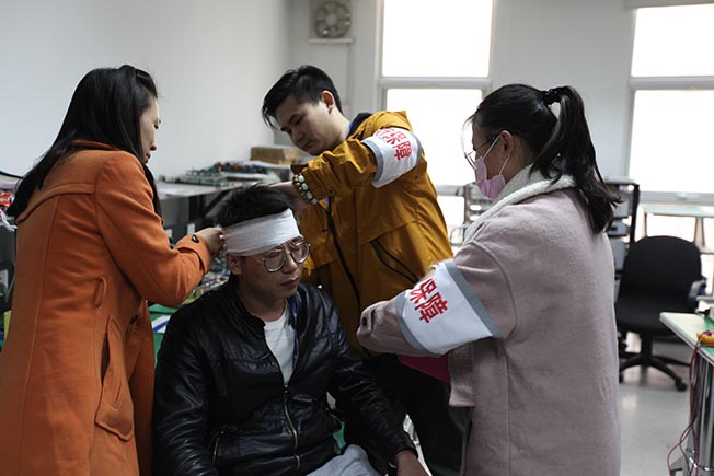 ▲ 醫(yī)療救護(hù)組為傷員包扎