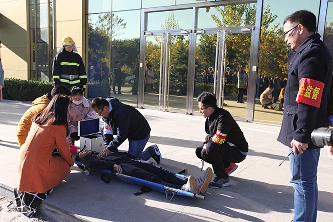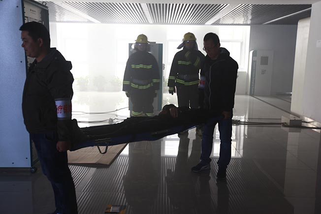 本次演習(xí)活動(dòng),增加了模擬專業(yè)消防人員搜救、傷員急救等環(huán)節(jié),得到當(dāng)?shù)嘏沙鏊娜χС趾蛯I(yè)指導(dǎo)。其中1名受傷員工在醫(yī)療救護(hù)組緊急包扎后由消防人員背出、1名昏迷員工由擔(dān)架抬出,緊急送往安全地帶進(jìn)行救治。