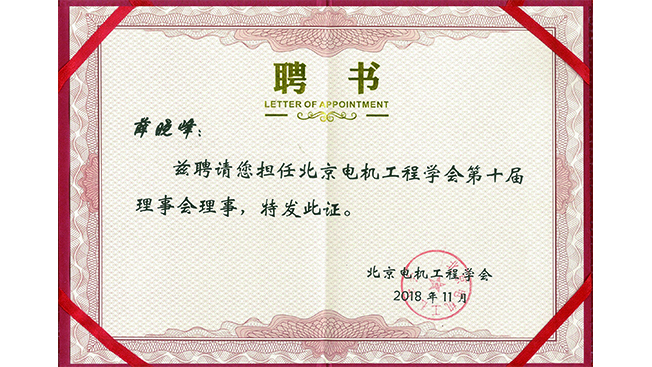 喜訊?|?博電薛曉峰副總經(jīng)理聘為北京電機工程學(xué)會第十屆理事會理事