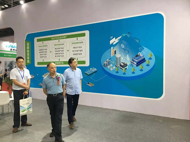 賈總一行參觀國網(wǎng)電動汽車服務有限公司展臺。
