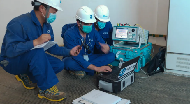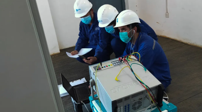 ▲該項目繼電保護使用的是北京博電pw4361E測試儀,巴方檢修員工在國內(nèi)專家組視頻遠(yuǎn)程指導(dǎo)下開展調(diào)試工作