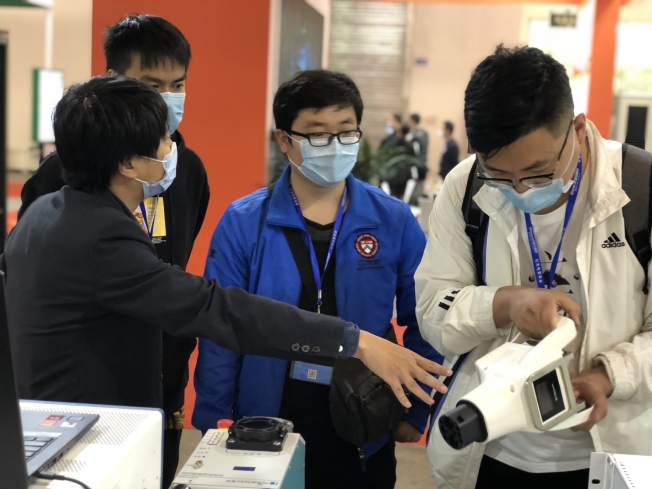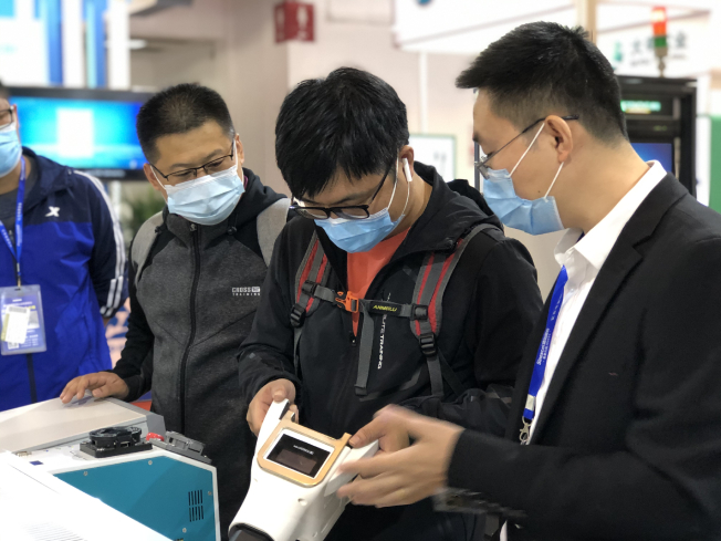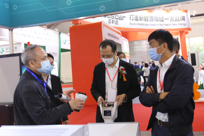 ▲專(zhuān)業(yè)觀眾詳細(xì)了解博電全球最便捷手持式充電監(jiān)測(cè)儀
