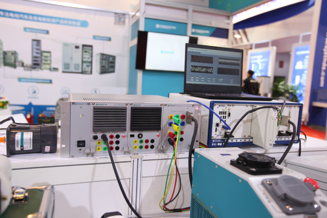 ▲博電功率硬件在環(huán)仿真部徐孟龍經(jīng)理向?qū)I(yè)觀眾介紹博電基于NI PXI和博電模塊化功率測(cè)試平臺(tái)研發(fā)的電動(dòng)汽車(chē)測(cè)試系統(tǒng)