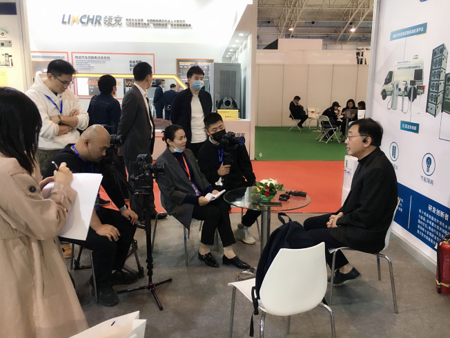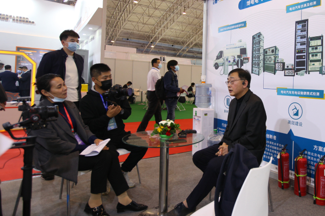 博電科技董事長(zhǎng)兼總經(jīng)理陳衛(wèi)蒞臨展位參觀指導(dǎo)并接受《中國(guó)能源網(wǎng)》、《新能源汽車(chē)報(bào)》等媒體專(zhuān)訪。