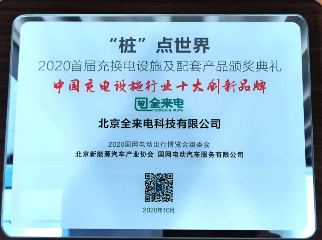 博電能源互聯(lián)網(wǎng)創(chuàng)新園園區(qū)孵化企業(yè)——北京全來(lái)電科技有限公司也斬獲大獎(jiǎng)——“中國(guó)充電設(shè)施行業(yè)十大創(chuàng)新品牌”。