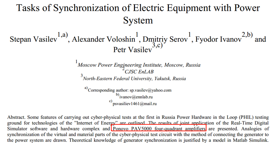 近日,莫斯科動力學(xué)院(Moscow Power Engineering Institute)在俄羅斯國家科技創(chuàng)新研究中心的網(wǎng)站發(fā)表相關(guān)文章,詳細介紹了使用博電科技的四象限放大器搭建的新的仿真實驗平臺。該平臺將不僅局限于動力學(xué)院內(nèi)部使用,更將作為國家科技創(chuàng)新中心的試驗臺開放給合作伙伴來使用。