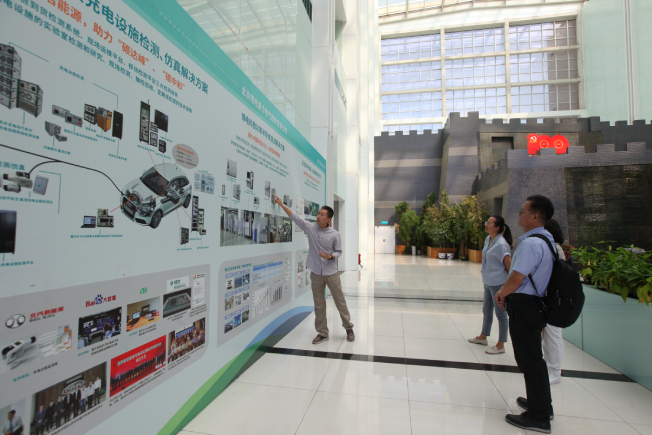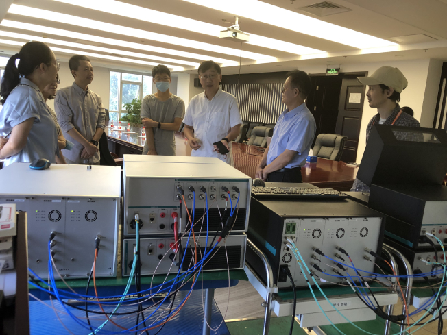 在會議中心,博電科技董事長陳衛(wèi)向于坤山秘書長一行詳細介紹了博電科技的發(fā)展現(xiàn)狀以及半導體檢測、電動汽車及充電設施檢測領域的技術突破。