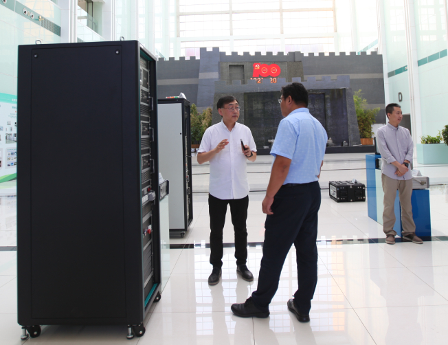 在博電科技一樓展示區(qū),博電科技董事長(zhǎng)陳衛(wèi)對(duì)工信部汪宏副司長(zhǎng)一行的蒞臨參觀表示熱烈歡迎。