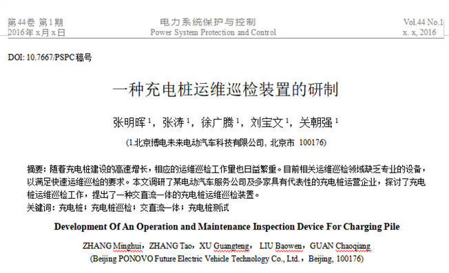 由北京博電未來電動(dòng)汽車科技有限公司總經(jīng)理張明暉、總工程師張濤、副總經(jīng)理徐廣騰等撰寫的《一種充電樁運(yùn)維巡檢裝置的研制》一文,成功入選會(huì)議論文集。博電科技長(zhǎng)期跟蹤國(guó)內(nèi)外前沿技術(shù),以自身成熟的智能電力檢測(cè)設(shè)備為基礎(chǔ),根據(jù)自身在電動(dòng)汽車檢測(cè)領(lǐng)域的技術(shù)優(yōu)勢(shì),為用戶提供專業(yè)的電動(dòng)汽車及充電設(shè)施檢測(cè)解決方案。