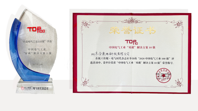 ▲全來電榮獲“2020中國電氣工業(yè)‘雙碳’解決方案TOP10”榮譽(yù)稱號