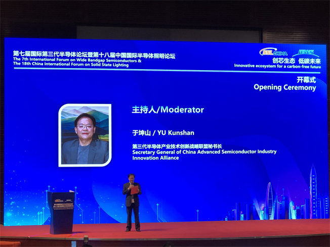 ▲第三代半導(dǎo)體產(chǎn)業(yè)技術(shù)創(chuàng)新戰(zhàn)略聯(lián)盟秘書長于坤山主持會議