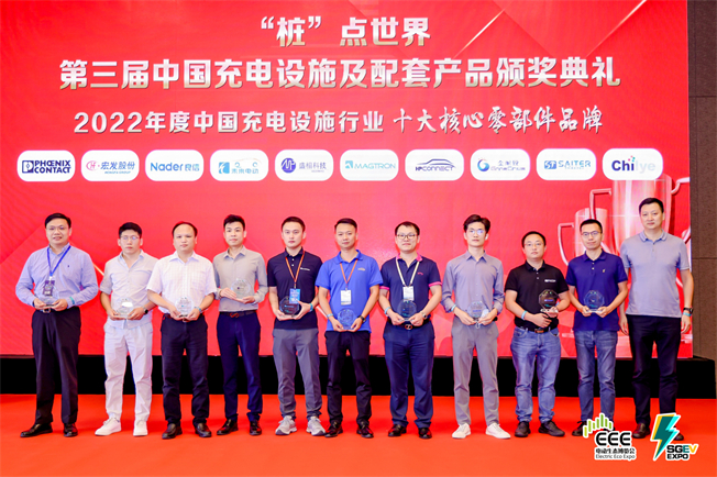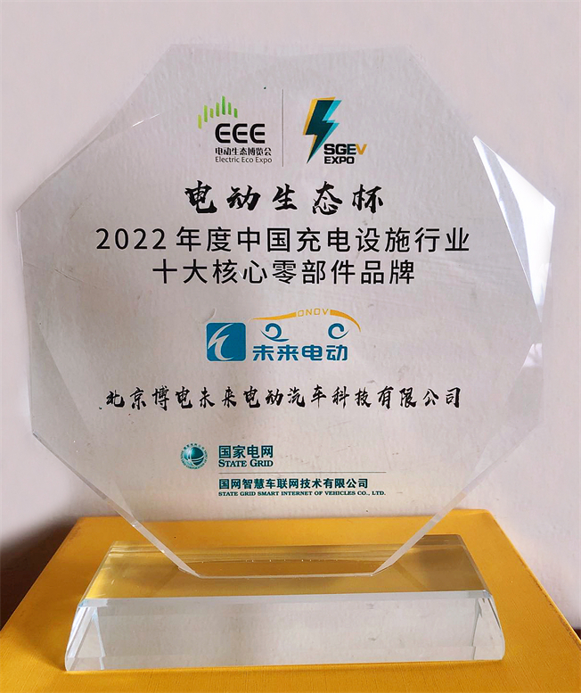 ▲“2022年度中國(guó)充電設(shè)施行業(yè) 十大核心零部件品牌”獎(jiǎng)杯