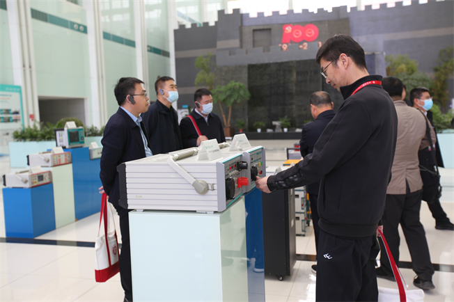 ▲到訪領(lǐng)導(dǎo)仔細查看博電科技攜式電動汽車及充電設(shè)施檢測設(shè)備