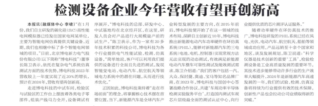 3月1日,《亦城時(shí)報(bào)》頭版以《檢測(cè)設(shè)備企業(yè)今年?duì)I收有望再創(chuàng)新高》為題,對(duì)博電科技進(jìn)行了深入報(bào)道。