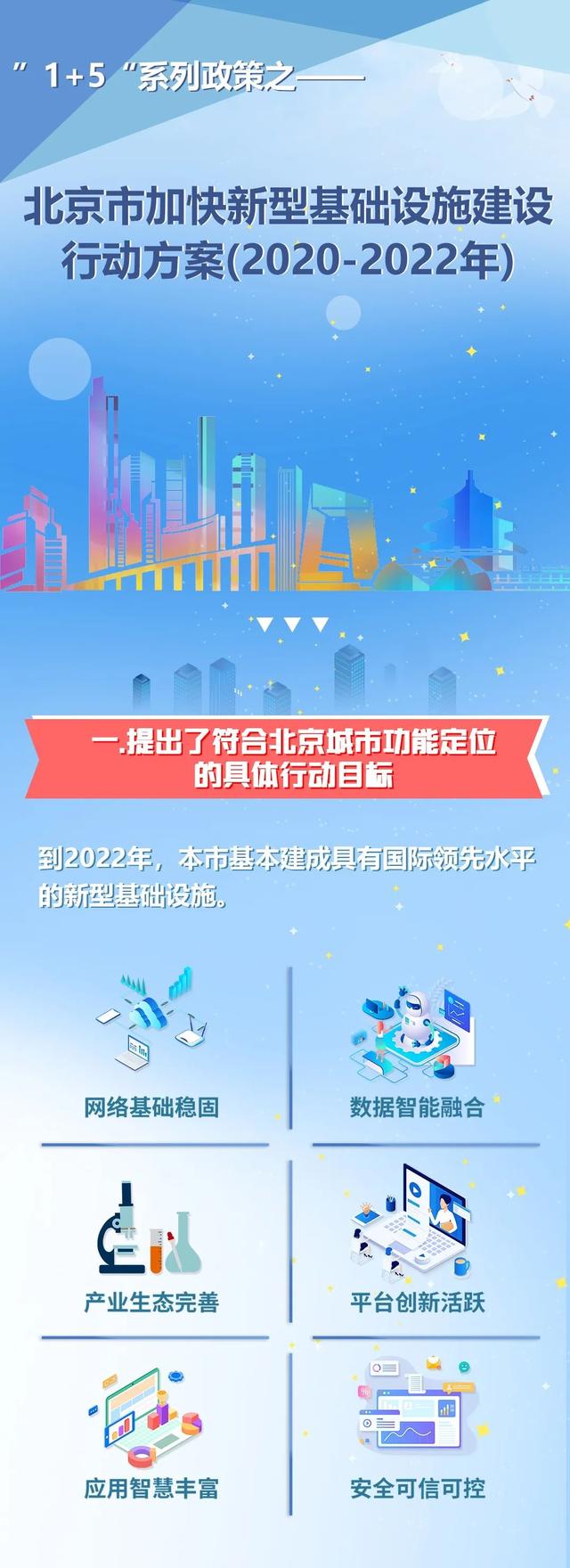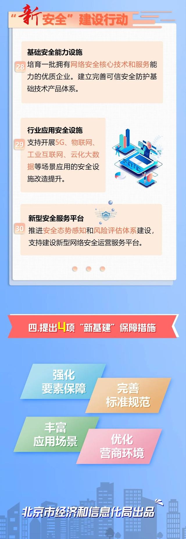 近日,北京市發(fā)布了《北京市加快新型基礎(chǔ)設(shè)施建設(shè)行動方案(2020-2022年)》?!斗桨浮肪劢埂靶滦途W(wǎng)絡(luò)基礎(chǔ)設(shè)施、數(shù)據(jù)智能基礎(chǔ)設(shè)施、生態(tài)系統(tǒng)基礎(chǔ)設(shè)施、科創(chuàng)平臺基礎(chǔ)設(shè)施、智慧應(yīng)用基礎(chǔ)設(shè)施、可信安全基礎(chǔ)設(shè)施”六大方向,暨“新網(wǎng)絡(luò)、新要素、新生態(tài)、新平臺、新應(yīng)用、新安全”,實施30個重點任務(wù)。