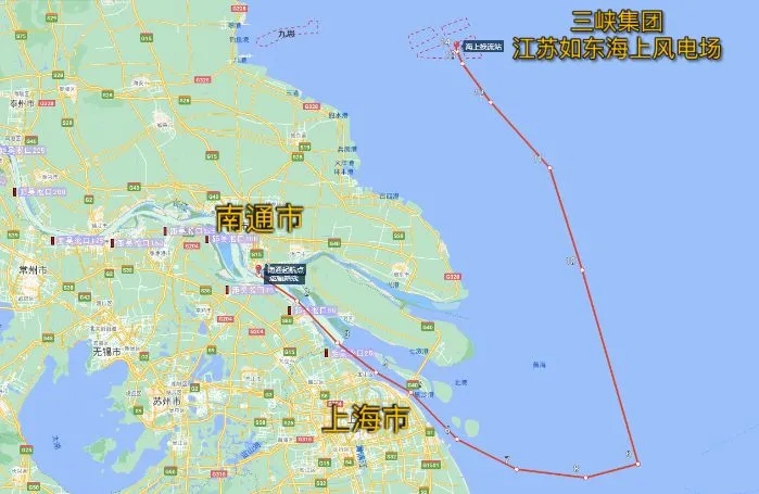 三峽如東海上換流站運輸路線示意圖
