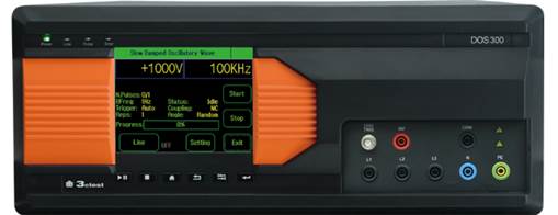 c) DOS 300阻尼振蕩波模擬器,輸出電壓0.2kV~3.3kV,振蕩頻率100kHz,1MHz。可以完成基于標(biāo)準(zhǔn)GB/T17626.12-1998的振蕩波抗擾度試驗(yàn)。